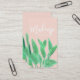 Eine elegante moderne, stilvolle Maskenbildner-Visitenkarte mit eleganter Skripthandbeschriftungs-Arttypographie im Weiß auf handgemaltem tropischem Blattparadiesvogel des Aquarellgrüns erröten an rosa Hintergrund. Wenn Sie irgendeine Kundenbezogenheit benötigen, zögern Sie nicht, wenn Sie mit mir in Verbindung treten