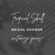 Eine sprichwörtliche, schicke Halloween-Thematikdusche mit einer tropischen Blumenmotiv-Illustration mit orangefarbenen und bordeauxfarbenen Blume und grünem Dschungelblättern auf einem rauchigen schwarzen Hintergrund. Dieses einzigartige und elegante Halloween Brautduscheinl mit Ihren Veranstaltungsdetails in weißer Schrift zu personalisieren.