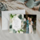Aquarell mit geometrischem Rahmen, handgemalte tropische Blätter Grünflächen und ein Foto des Paares. Die Farbe und die Textdetails können personalisiert sein.