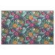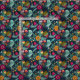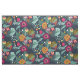 Ein helles tropisches Blumenmuster in den Farben Blau, Grün, Orange und Hot Rosa.