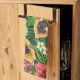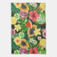 Tropisches Mischobst, Blume und Blätter auf schwar Geschirrtuch