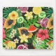 Tropisches Mischobst, Blume und Blätter auf schwar Mousepad
