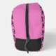 Cyclists will love this vibrant pink Dopp Kit bag, patterned with black mountain bikes and a circle to add your own initial.