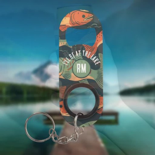 Motif de truite avec monogramme et texte qui dit, "Je serai au lac".
