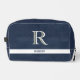 Trousse De Toilette Texture en cuir bleu Monogramme blanc Nom Kit Dopp