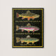 Design feature three beautiful trout - the Brook Trout, salvelinus fontinalis; Rainbow Trout, oncorhynchus; and, the Brown Trout, salmo trutta. The art is taken from three original watercolor paintings by Doug Shultz. Makes hat eine einzige Gift für anyone who loves fishing or ichthyology. Black Background. This sams design is available on charts of other items. Puzzles are available with other kinds of fish, too.