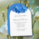 True Blue Hydrangea Blume Hochzeit Einladung Vorlage. Einfache weiße Karten mit schwarzem Text in modernem Skript für Namen und gedruckten Großbuchstaben für die gesamte Erholung. Am Ende kann eine neue Adresse für den Empfang eingefügt werden. Die Aufnahme hat das Paar, das Gäste einlädt. Das Gegenteil ist massiv blau.