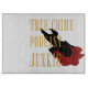 Ein gläsernes Schneidebrett für echte Podcast-Liebhaber überall, mit einem Körper in Silhouette mit "wahrer Kriminalität podcast-Junkie" Goldtext-Overlay