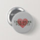 Ein Pinback-Button für echte Kriminalpodcast-Liebhaber überall, mit einem roten Fingerabdruck-Herz mit Schreibmaschinenstil.