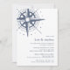 Coastal Chic Probe Dinner Einladung bietet eine Vintage handgezeichnete nautische Kompass-Illustration, mit Ihren Probe Dinner Details in klassisch marineblau. Diese Einladungen im Küstenstil sind perfekt für Strand-, Sommer- oder Wassersport-Proben und -Feste geeignet und gehen in die blauen und weißen Streifen um. Umfasst Platz für die Zeremonie Probe und das anschließende Abendessen oder Feiern.