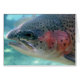 Comporte une photo en gros plan d'un truite arc-en-ciel (parfois appelé une truite saumonée) par une fenêtre de visionnement à l'établissement d'incubation de poissons de Bonneville en Orégon. Le truite arc-en-ciel sont les mêmes espèces que la truite à tête d'acier, la différence étant cette truite à tête d'acier ont une course de mer, retournant au frai dans l'eau douce après 2 ou 3 ans en mer.