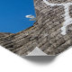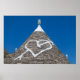 Plakatdruck eines nahen Aufbaus des Steindaches eines traditionellen Trulli-Hauses in Alberobello, Apulien in Italien.