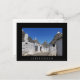 Postkarte mit traditionellen weißen Putz-Trulli-Häusern mit Steinplatten in konischen Dächern in einer kleinen Straße in der Stadt Alberobello, Itria Tal in Puglia, Italien mit einem schwarzen Rand und dem Text: "Alberobello".