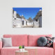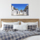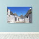 Canvas Druck der traditionellen weißen Gipshäuser mit Steinplatten in konischen Dächern in einer kleinen Straße in der Stadt Alberobello, Itria Tal in Puglia, Italien.