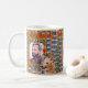 Hunde Liebe klassische Musik. In einigen Tierheimen schlafen die Hunde jeden Abend mit den beruhigenden Klängen klassischer Musik. Wenn die Musik beginnt, hören sie alle auf zu bellen und lassen sich zu süßen Träumen nieder. Die Entwürfe in dieser "Hunde-Liebe-Klassik"-Serie feiern die intuitive Verbindung zwischen Hunden und dieser wunderbaren Musik. Das Originalwerk auf dieser Tasse von ZoeSPEAK zeigt ein Portrait des Komponisten Pyotr (Peter) Ilyich Tchaikovsky. Das Portrait ist in einem verzierten vergoldeten Rahmen, auf einem mittelblauen Hintergrund mit roten und goldenen Streifen, goldenen Sonnen und weißen Schwänen. Vor dem Foto eines Hundes, kommentiert (in Englisch und Französisch) und zeigt mit roten Pfeilen auf den Komponisten. Im Text steht "Wahrlich Tschaikowski".