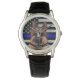 Uhr, Vintage Männeruhr mit schwarzem Lederarmband