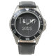 Herrenuhr aus Edelstahl mit schwarzem Lederarmband