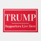 Diese Donald Trump Türmatte weist einen soliden roten Hintergrund mit einem weißen rechteckigen Rahmen auf. Der Name "Trump" wird in einem großen, weißen, raffinierten Schriftart gedruckt, in dem die Phrase "Unterstützer leben hier" in einem passenden weißen Schriftart gedruckt wird. Stolz zeigen Sie Ihre Unterstützung für Donald Trump und seine Kampagne von 2024, der US-Präsident für weitere vier Jahre zu bleiben.