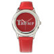 Kinderuhr aus Edelstahl mit rotem Lederarmband