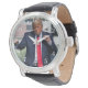 Uhr, Vintage Männeruhr mit schwarzem Lederarmband