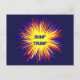Diese Postkarte weist ein abstraktes Muster der politischen Sternexplosion in Rot, Gelb und Blau mit den Worten Dump Trump in der Mitte auf. Text kann angepasst werden.
