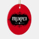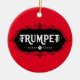 Trompet in dekorativem Text gegen ein Schwarz-Weiß-Emblem ist ein einzigartiges Geschenkdesign für Messingmusiker, Lehrer und Studenten in Jazzband, Konzert und Marching Band.