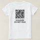 Auto-défense pour les infoguerres. Un t-shirt pour ceux qui ne veulent pas être filmés ou scannés. Le code QR mène actuellement à un site Web agaçant, mais peut être personnalisé à n'importe quel site que vous voulez. Le texte peut également être personnalisé. Le design est le même à l'avant et à l'arrière. Un moyen de dissuasion probable contre quiconque cherche à vous filmer quand vous préféreriez qu'il ne le fasse pas, car ils ne veulent pas risquer de nuire à leur appareil en le pointant vers le QR. Il n'est pas recommandé d'utiliser un lien vers un malware réel ou d'utiliser cette chemise pour enfreindre les lois.