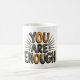 Commencez chaque journée avec un rappel que vous êtes assez avec cette belle tasse motivante. Avec le message puissant "Vous en êtes assez", cette tasse en céramique de 11 oz est le compagnon parfait pour votre café du matin, le thé ou toute boisson qui apporte confort. Que vous ayez besoin d'une affirmation quotidienne ou que vous souhaitiez partager de la positivité avec d'autres, cette tasse vous ravira chaque fois que vous sirotez. Parfait pour votre propre collection ou comme un cadeau réfléchi pour les proches, les amis ou toute personne qui a besoin d'un peu d'encouragement.