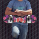 Das helle und elegante Design des Skateboards besticht durch farbenfrohe Tulpen vor dunklem Hintergrund. Ein perfekter Mix aus kühnen Blumen und modernem Stil, ideal für Skater, die eine frische, künstlerische und sehenswerte Fahrt gewollt haben. Bringen Sie die Schönheit der Frühlingsblumen auf die Straße oder zeigen Sie sie als Blumenwerk.