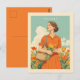 Mit diesem Vintagen Holland Reiseplakat können Sie den Charme der niederländischen Landschaft in Ihre Zuhause einbringen. Dieses Kunstwerk mit einer stilvollen Frau in einem orangefarbenen Kleid, umgeben von pulsierenden Tulpen und blauen Himmeln, erweckt die zeitlose Schönheit des Frühlings in den Niederlanden. Ideal für Floristen, Reisende und Retro-Kunstsammler. Ideal für Wanddekoration, Geschenke oder Sammlungen zum Thema Reisen.