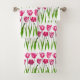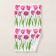 Serviette sertie dans une impression textile numérique de tulipes dans un dégradé d'aquarelle dans les tons rose fuchsia profond et vert feuille