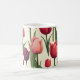 Diese gemusterte Tasse aus hochwertiger Keramik ist stilvoll und dauerhaft zugleich. Die lebhaften Farben und die feinen Details der Tulpen sorgen für eine angenehme Atmosphäre.