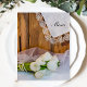 Le charmant menu du Mariage campagnard Rustic White Tulips peut être personnalisé avec les détails du repas que vous pourrez servir à votre déjeuner de douche nuptiale de mars, d'avril ou de mai, dîner de réception de mariage ou brunch post-mariage. Ce menu nuptial personnalisé et décontracté mais élégant propose une photographie florale d'un bouquet de fleurs de tulipes blanches, collier de perles blanches, voile nuptiale et un mouchoir vintage en lin paré dentelle avec un arrière - plan en bois de grange brun.