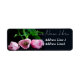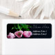 Ein Stillleben Foto von frisch geschnittenen rosafarbenen Tulpen, mit langen grünen Stielen, auf schwarzem Stoff abgesetzt. Copyright ©Kimberly J Tilley. Passen Sie dieses Label-Design mit Ihren Informationen an.