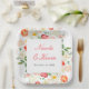 Pretty wedding paper plate with tulips, daffodils and other flowers. Perfect for a spring or summer wedding. The words can be changed to suit your own details or requirements