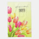 Schöne Aquarelltulips Bouquet-Kunst mit einem Namen Monogramm und einer kurzen Nachricht mit einem frisch sonnigen Hintergrund. Atemberaubende, realistische Aquarellkunst: Personalisieren Sie die Namensänderung für Monogramm und Text.