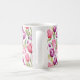 Diese klassische Tasse mit weißem Kaffee wird mit einem hübschen Tulpenprint gezeigt. Passen Sie diese Tasse an oder kaufen Sie, wie es ist. Lizenziertes Bild