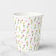 Tulpen und Schmetterlinge, weiße Muster Papier Becher. Die Tulpen in Rosa, Gelb und Orange sind auf weißem Hintergrund gestaltet. Rosa und gelbe Schmetterlinge verfärben sich um die Tulpen herum und verstärken die fröhliche Ästhetik mit einer skurrilen Touch!