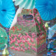 Zeitlos, elegant buntes Tulpenfeld. Rosa, lila, rot, in einem grünen Bett.