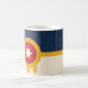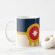 Tasse mit einem Design mit der Fahne von Tulsa, Oklahoma. Eine beige und marineblaue blaue Flagge mit goldenem Osage-Schild, die einen roten Kreis und einen beigen, sechsspitzen Stern enthält