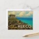 Die Maya-Ruinen von Tulum, Mexiko, auf der Yucatan-Halbinsel werden durch das reizende, grün-blaue Wasser des karibischen Meeres in diesem Vintage-Reise-Bild ergänzt.
