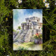 Diese Postkarte zeigt ein Aquarellbild von Tulum, Mexiko.