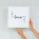 Tun Sie, was Sie Liebe, Liebe, was Sie tun Wand-Kunst-Poster. Moderne Einrichtung für Ihr Wohnzimmer. Minimalistisches Design mit Schwarzweiß-Grafik. Es kann als physisches Plakat oder als digitaler Download in hochauflösender Datei erworben werden, um es selbst zu drucken.
