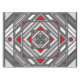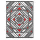 Eine konzentrische quadratische Mandala nimmt das Aussehen eines Tunnels an, der den Betrachter mit einer Kombination aus verworrenen Linien, Dreiecken und Kreisen in Grautönen, Rot und Weiß zeichne, um fast eine optische Täuschung zu erzeugen.