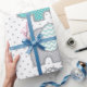 Packpapier mit Tupfenbabyelefanten. Vervollkommnen Sie für die Verpackung eines Babypartygeschenks.