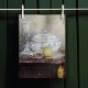 Eine schöne Postkarte mit dem Gemälde des französischen Künstlers Berthe Morisot (1841-1895) mit dem Titel Tureen und Apple (1877). Ein impressionistisches Stillleben mit Kristallkugel, einer blau-weißen Terine und einem grünen Apfel auf einem Sideboard.