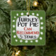 Ein lustiges typografisches Design, das "Turkey Pot Pie: Can Recommend, 5 Stars" sagt. Es ist schwarz und rot auf einem weißen Rechteck mit funky, spielerisch weißen Punkten, die ihn umgeben, alles auf grünem Hintergrund.