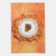 Moderner Kranz aus Herbstblättern und Truthühnern auf orangefarbenem Hintergrund mit Textur