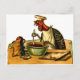 Vintage Darstellung eines Truthahns im Hut des Koch und Vermischung von Zutaten beim Lesen eines Rezeptes. Eine Karte hat den Anfang einer Party Einladung (Sie sind zu einem Party eingeladen - ich koche gerade). Dieser hier macht viel Spaß.