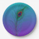 Türkis bis Lila Pfauenfederhalter Pappteller